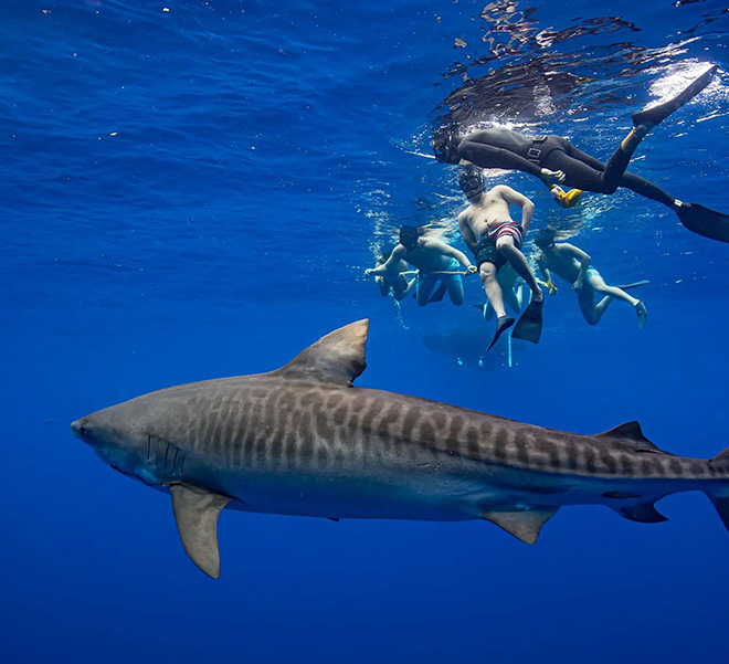 Our team, comprised of Hawaii's and the world's top shark handlers, offers unrivaled expertise in shark behavior and safety. Their knowledge enables us to offer guests unprecedented freedom to swim and dive with sharks for truly immersive and interactive experiences. Dive with us and experience why our guests recommend us over any other tours.
